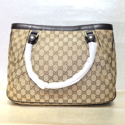 Gucci GG Logo with Brown Trimming Sukey Tote
